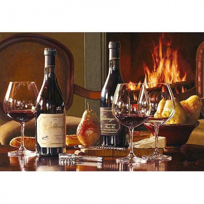 Wijn bij open haard